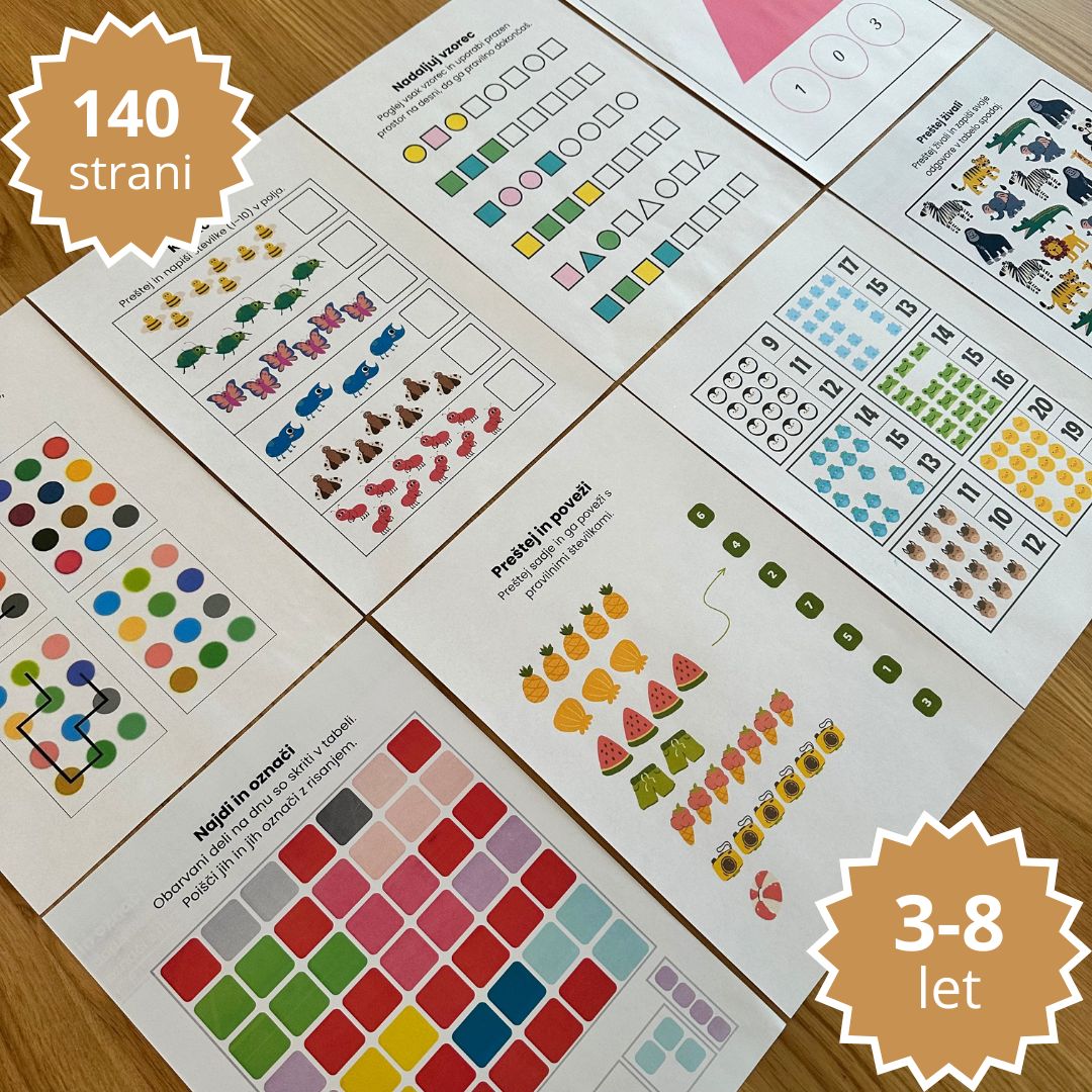 🧠 140 strani interaktivnih vaj – štetje, logika, vzorci