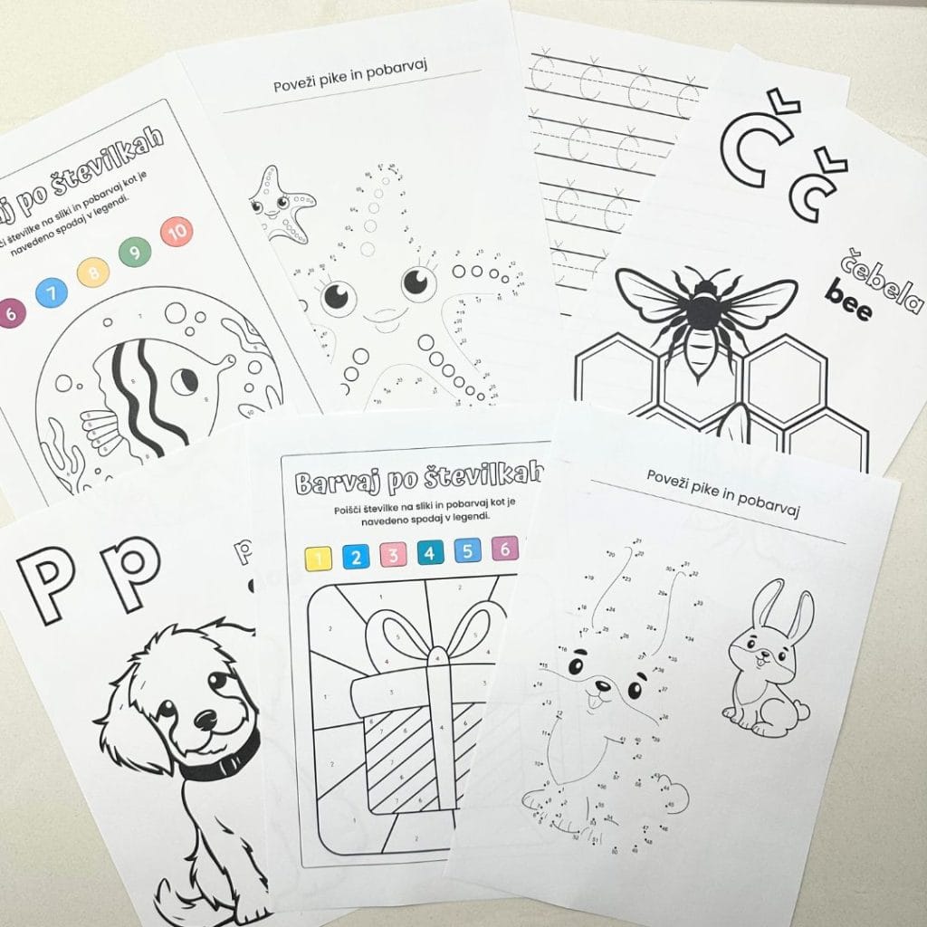 ⭐️⭐️⭐️⭐️⭐️ Najbolj mi je všeč, da lahko natisnem samo določene strani in jih uporabimo večkrat. Uporabljamo jih na tablici in na papirju.