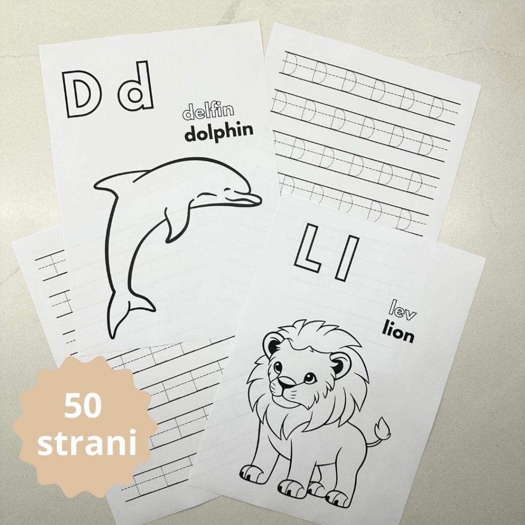 🌈 Slovenska abeceda in spoznavanje živali v angleščini (50 strani)