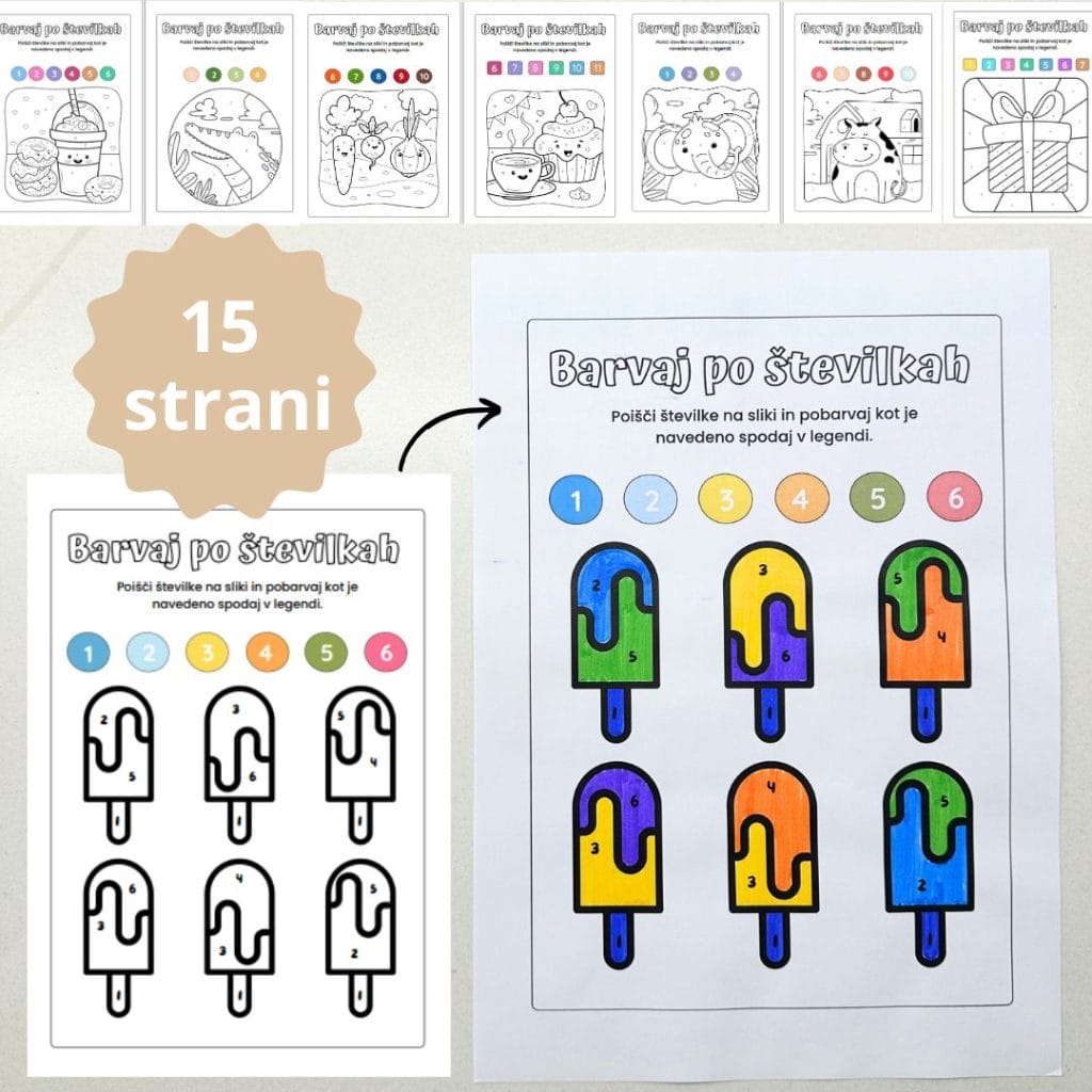 ⭐️⭐️⭐️⭐️⭐️ Končno material, ki združuje igro in učenje. Poveži pike in barvanje po številkah sta moji hčerki res všeč.