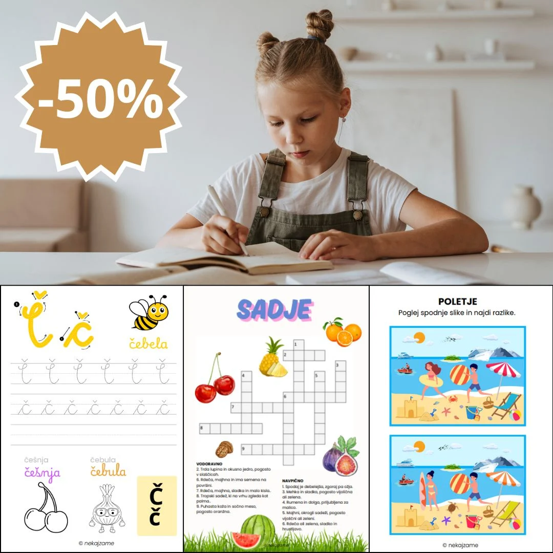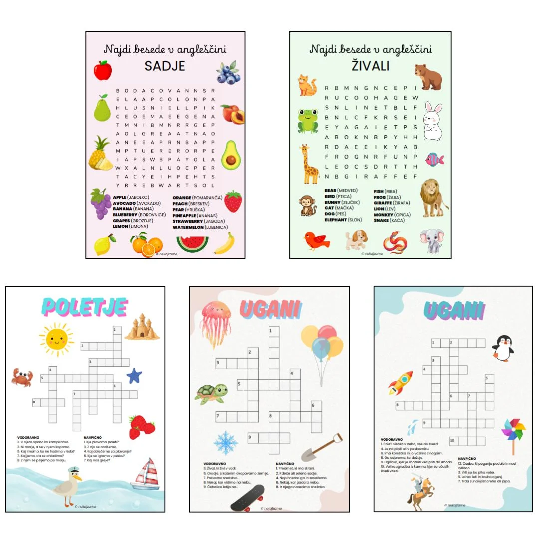 🧩 Otroške križanke (10 strani): Otrokom prilagojene križanke širijo besedni zaklad in bralno razumevanje.